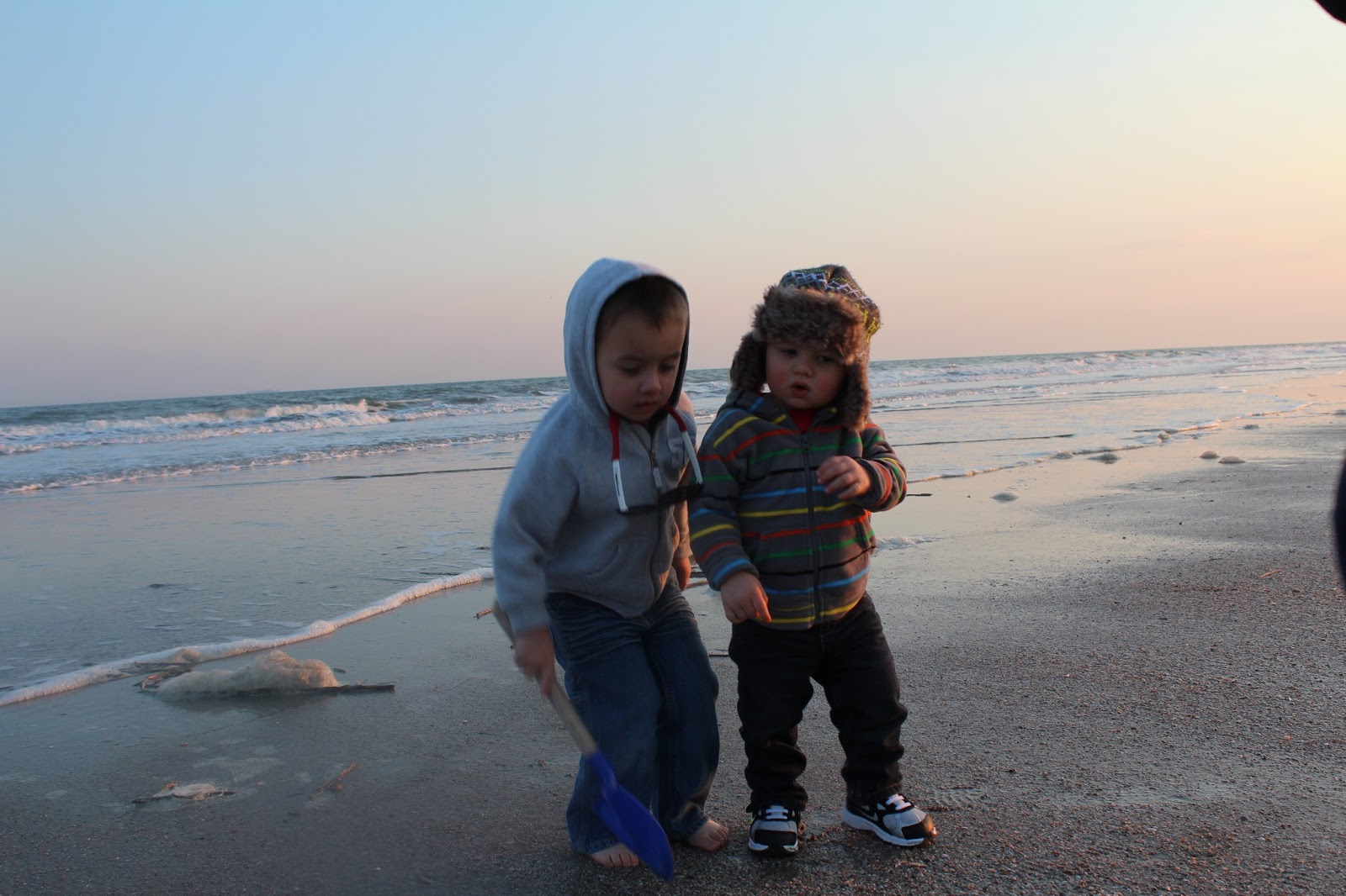 Owen could spend hours on the beach with just a shovel and a bucket...Kellan could spend hours just watching. He loves his big cousin. |